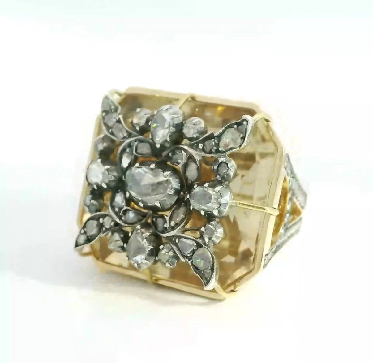 Citrine and Diamond Paired with Antique Old Mine Diamond Element in 18K Gold